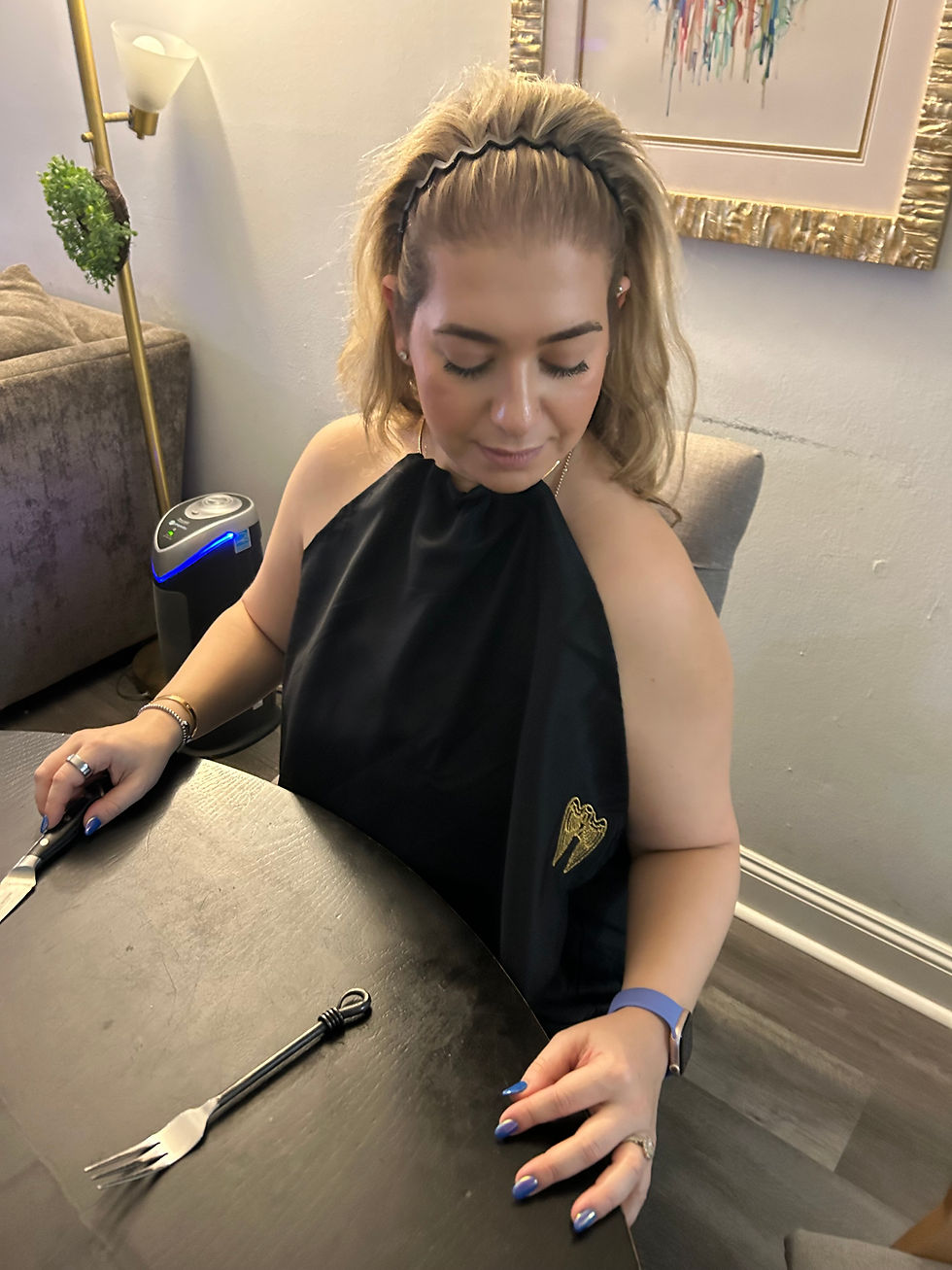 Our couture clothing Dinnafore elegantly safeguards against spills, allowing you to enjoy meals without fear. Crafted from high-quality materials, it combines utility with luxury, enhancing any outfit while keeping you worry-free.